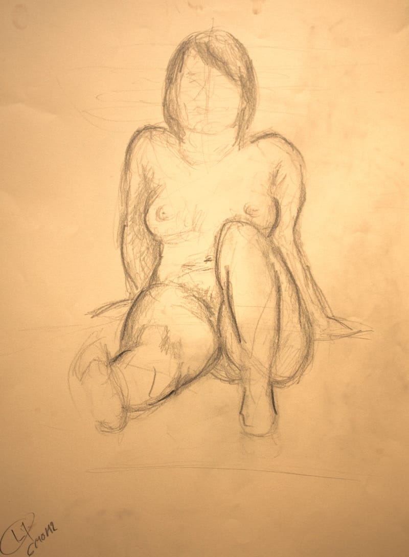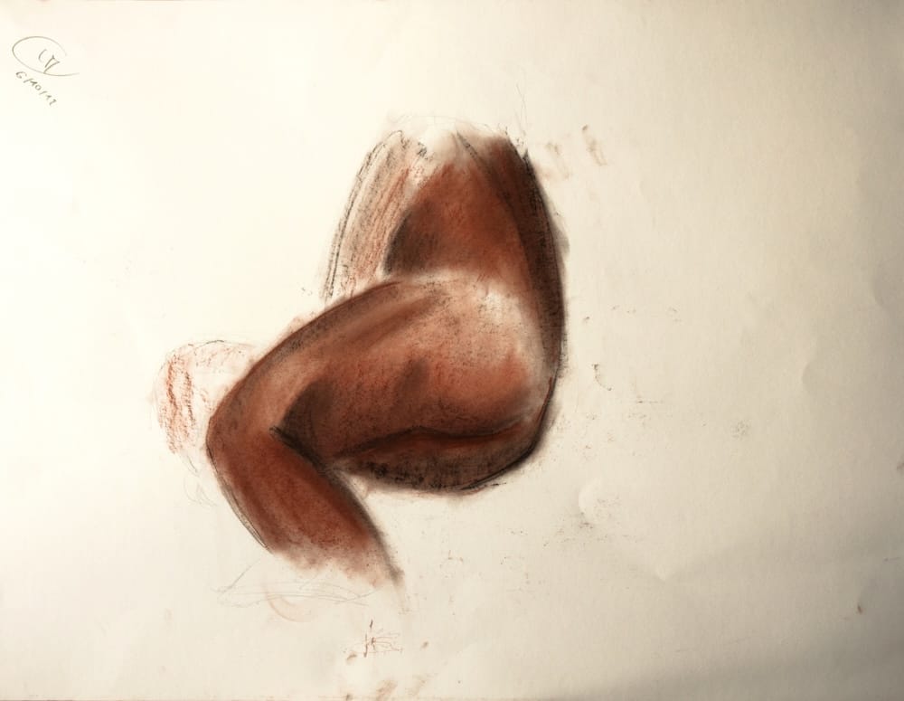Une pose assise avec un beau raccourci… / Essai aux crais d’art… j’ai été trop lent !