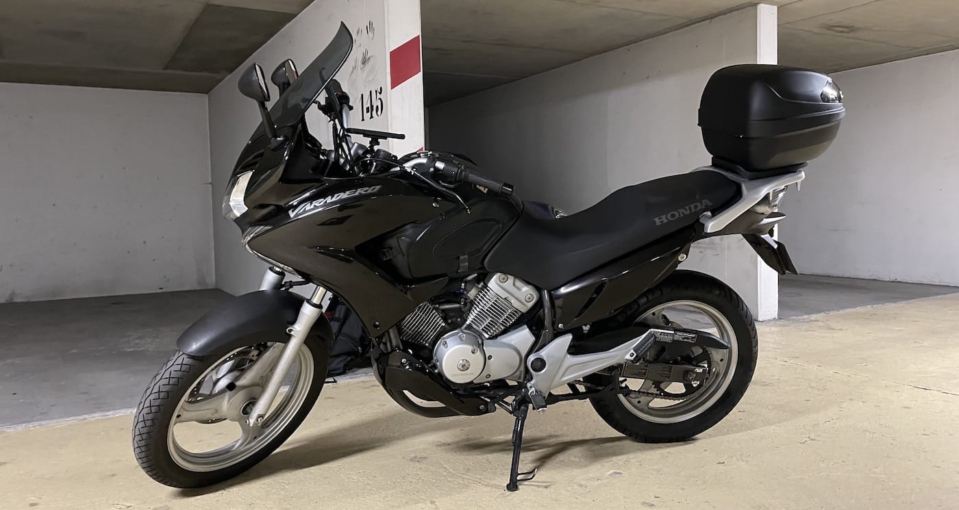 Après le passage de l’attestation, je suis parti plusieurs mois en tournage avec l’intention d’acheter ma première moto en rentrant. Depuis le début de mes recherches, la Honda XL125V Varadero était le modèle qui me semblait le plus indiqué. J’ai longuement hésité, même avec d’autres modèles plus petits par peur d’un trop gros gabarit. Puis j’ai fini par trouver un vendeur pas loin de chez moi, une belle occasion, dans mon budget et bien équipée.